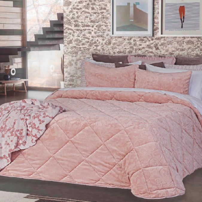 Edredão Veludo com desenho. Enchimento de 200grs. Marca: Leiper